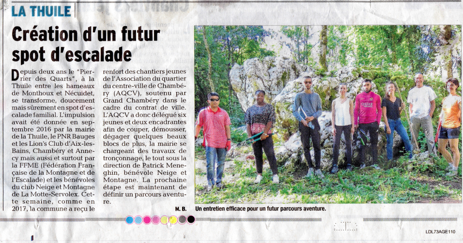 Le travail réalisé par les bénévoles de neige et montagne pour aménager le site de bloc de La Thuile est salué par le dauphiné.