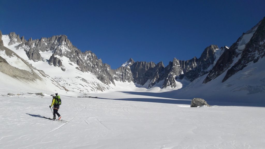 2ème jour, levé 6h (avec passage heure d’été, c’est chaud) pour être sur les skis à 6h50 pétante. Direction le Col du Chardonnet avec une descente en rappel pour basculer côté Suisse. L’objectif suivant est le passage de la fenêtre de Saleina. Ensuite, on pousse en direction du dernier col de la journée, le Col Supérieur du Tour. Pour le finish, descente sur le Tour avec un dénivelé négatif d’un peu plus de 2000 m.